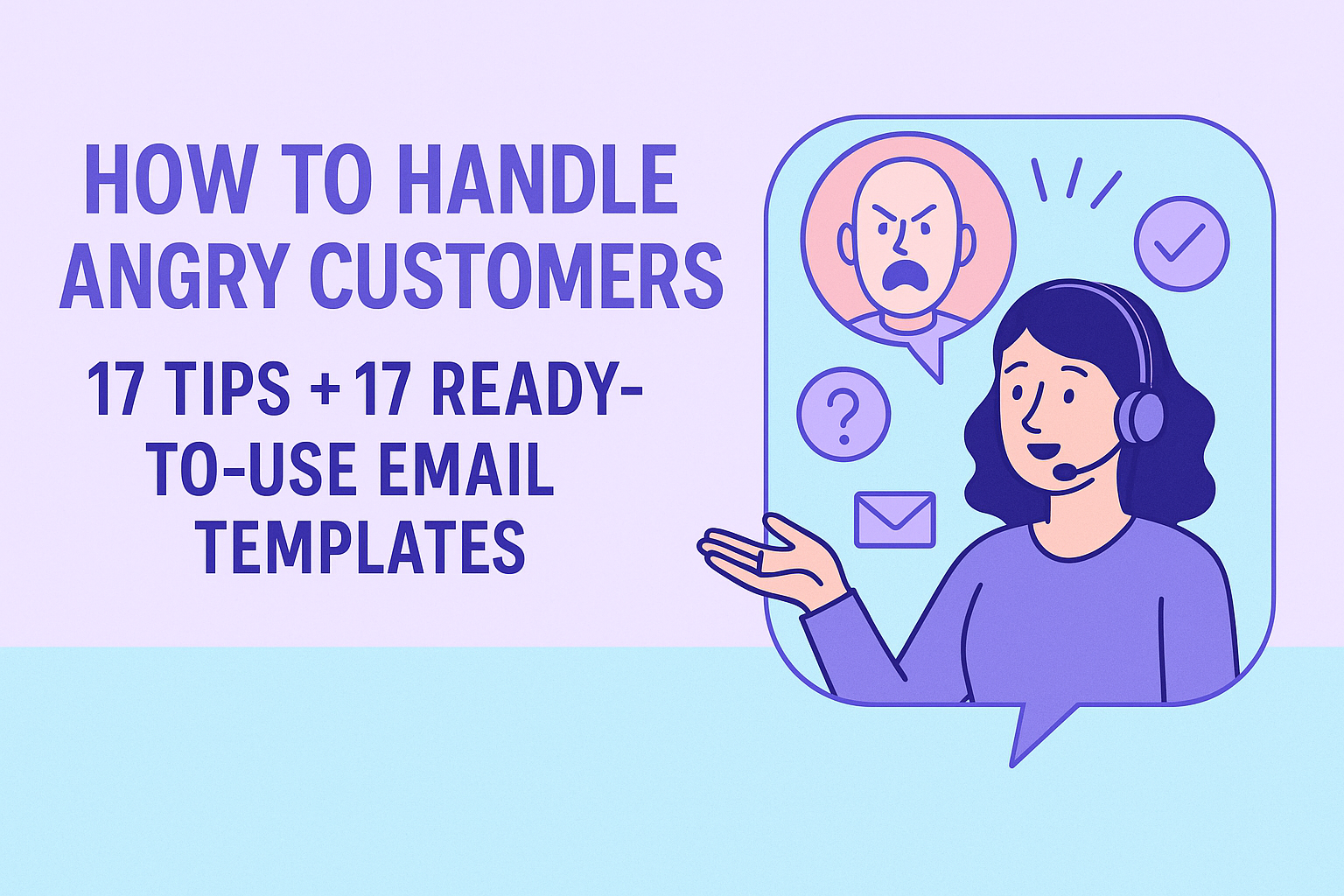 This guide covers 17 actionable tips for managing angry customers and 17 ready-to-use email templates for real scenarios like shipping delays, refunds, account issues, and more.