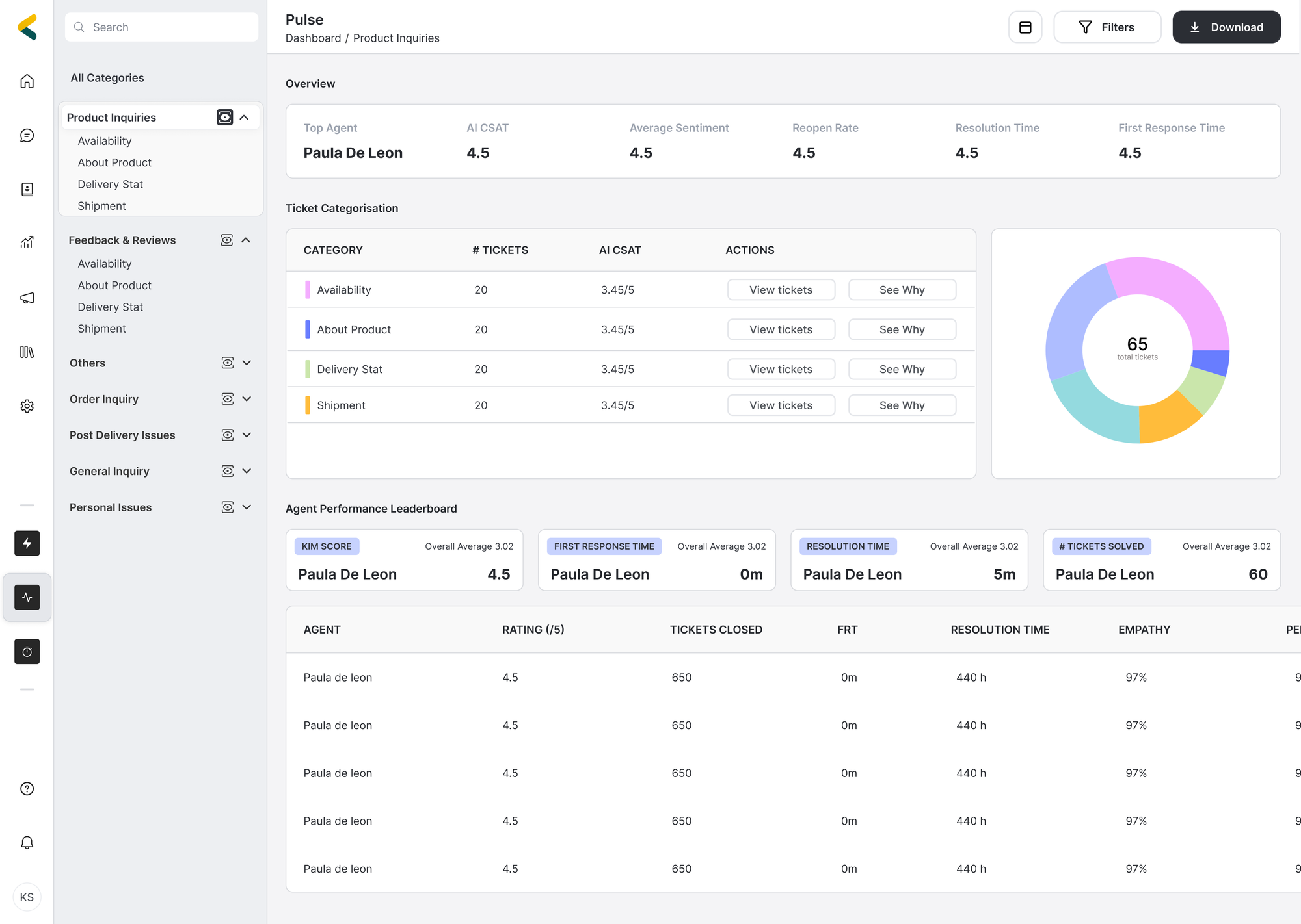 Brands like Kim have features like Pulse that literally measure the “pulse” of every ticket, showing you trends in customer frustration or repetitive issues. That’s gold for improving both customer support and your actual products.